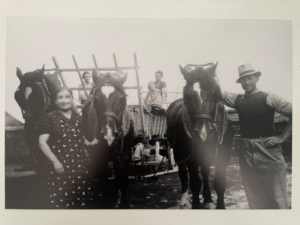 avec sa jeune fille Marie-Françoise (3ème génération) sur le chariot de paille,